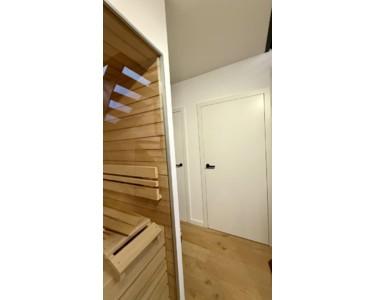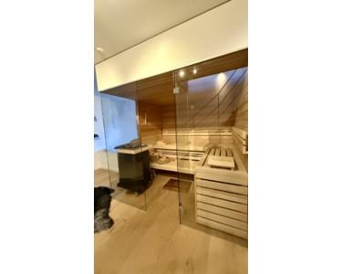 Sauna mit Glasfront und Holz