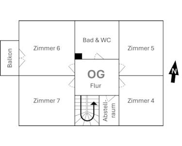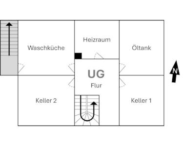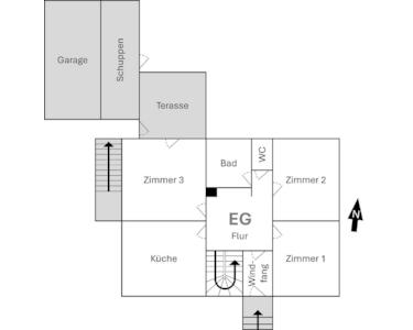 Die vorhandene Grundrissstruktur eröffnet die Option, das Haus in zwei separate Wohneinheiten aufzuteilen, z. B. durch eine Außentreppe zum Dachgeschoss.