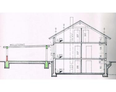 Das 1972 in Massivbauweise errichtete Haus wurde 1976 durch den Ausbau des Dachgeschosses und eine Garage mit Geräteschuppen erweitert. Es verfügt über eine Gesamtwohnfläche von 156 m², verteilt auf das Erdgeschoss (90 m²) und Dachgeschoss (66 m²). Zusätzlich bietet der 95 m² große Keller und die 33 m² große Garage mit Schuppen reichlich Stell- und Stauraum. Die Elektrik wurde 1995 modernisiert und das Dach zusätzlich gedämmt. Für Heizung und Warmwasser sorgt eine zuverlässige Öl-Zentralheizung von 1978. Ein Holzofen im Erdgeschoss bietet zusätzlich die Möglichkeit, behagliche Wärme im gesamten Haus zu verteilen.