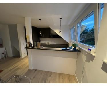 Insgesamt sind im Jahre 2022 zwei komplett kernsanierte und individuelle Premium-Doppelhaushälften in gehobener/luxuriöser und moderner Ausstattung entstanden, von denen das rechte Haus zur Vermietung steht. Das linke Haus ist an eine sehr nette internationale Familie vermietet.