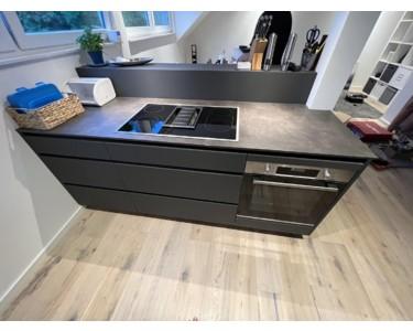 + 1 sehr großzügiger offener Wohn-Essbereich mit moderner hochwertiger griffloser Küche mit separater Kochinsel inkl. Kochfeldabzugssystem und Premium-Geräten