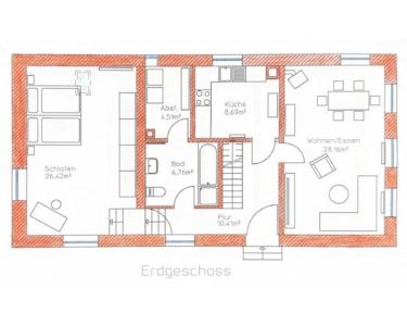 Im Wohnzimmer besteht auch die Möglichkeit einen Kaminofen zu betreiben.