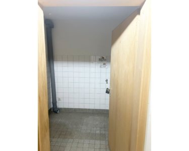 Der Hauptbereich auf der rechten Seite des Kellers umfasst zusammenhängende Räumlichkeiten von ca. 71m², die aktuell an einigen Stellen durch einfach entfernbare Leichtbauwände unterteilt sind. Auf der linken Seite des Kellers findet sich zusätzlich ein Lagerraum (ca. 21m²), ein WC (ca. 1m²), ein Extraraum (10m²) mit mehreren Wasseranschlüssen und Duschkabine sowie der ehemalige Gipsraum (15m²) mit einer abgetrennten Kabine mit fester Tür (2m²).