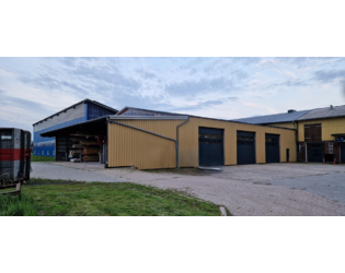 Zusätzlich sind an der Halle Unterstände für 4 Fahrzeuge vorhanden.