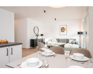 Den zukünftigen Bewohnern stehen dabei verschiedene Grundrisse in den vier verschiedenen Häusertypen zur Auswahl. Darunter befinden sich funktionale Apartments, großzügig geschnittene Wohnungen in den Stadtvillen und Maisonettehäusern sowie Reihenhäuser. Von 2 bis 5 Zimmern und Größen von ca. 48 m² bis 153 m² bieten die Einheiten für jedes Lebensmodell ein Zuhause. Jede Wohnung verfügt über einen schönen Balkon oder Terrasse. Die durchdachte Anordnung der Räume ermöglicht eine optimale Nutzung des Wohnraums, wobei offene Küchen harmonisch in die Wohnbereiche integriert sind. Durchdachte Stauraumlösungen, hochwertige Materialien und moderne Ausstattungsdetails runden das Gesamtbild ab.