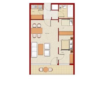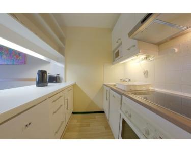 ID 0754123: 3 Raum Ferienwohnung mit großzügiger Raumaufteilung im 12.OG. Wohn- und Schlafbereich sind mit Vinylbelag ausgestattet. Einbauküche und Wannenbad mit WC.