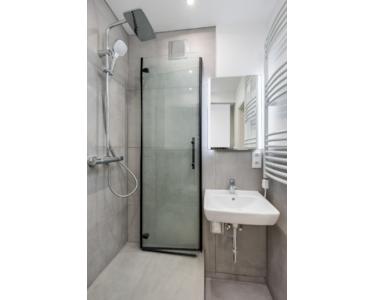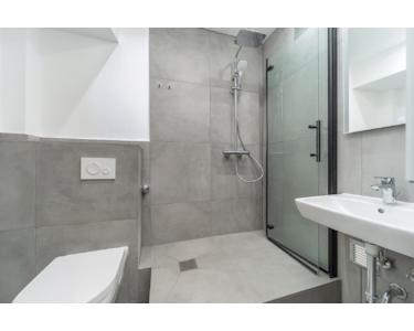 In den gemeinschaftlich genutzten Flächen – Küche, Flur und Bad – sorgen große, moderne Fliesen für ein pflegeleichtes Gesamtbild. Die Decken sind abgehangen und mit integrierten LED-Spots versehen, wodurch ihr noch mehr Lichtverteilung in den Räumen habt und euch nicht um Lampen kümmern müsst.
