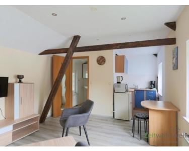 ### Please note the availability date! Bitte das Verfügbarkeitsdatum beachten! ### möblierte kleine Wohnung in der Geraer Innenstadt, ruhige Lage im Hinterhaus; WLAN und Waschmaschine vorhanden; separater Zugang vom Innenhof in den Treppenaufgang; Wohnraum mit Schrankwand, Sesseln, TV, Esstisch und offener Küche; Schlafzimmer mit Doppelbett und Kleiderschrank; Bad mit Dusche und WC; Pauschalmiete 590,00 Euro; Vermietung an 1 Person; Kaution 800,00 Euro; Endreinigung Mietersache; Mindestmietdauer 3 Monate; Pflichtangaben zum Energieausweis: Energieausweis gültig bis: 22.06.2027; Baujahr Gebäude: 1890; Energieausweis: nach Verbrauch; Energieverbrauch: 183.7 kWh/(m²a); Energieeffizienzklasse: F; Primärer Energieträger: Erdgas