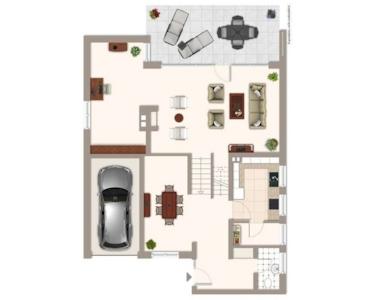 Im Erdgeschoss ist eine Garage vorhanden, weitere PKW-STP