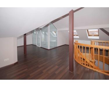 Im ausgebauten Dachgeschoss befindet sich der große Schlafbereich mit angrenzendem Wannenbad. Ein zusätzliches Duschbad befindet sich auf der unteren Etage der Wohneinheit.