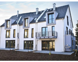 Moderne Klima- Käpsale-Doppelhaushälfte mit Kubus -Dachgauben und Schornstein mitten in Pfuhl zum Preis einer Wohnung und doch mit Garten. Gemeinsam wird es Dufte und Schee.