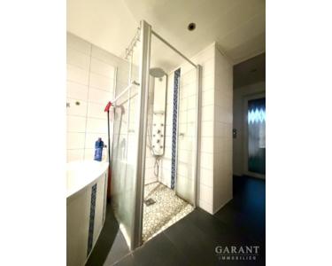 Im Erdgeschoss befinden sich ein großes Zimmer, Badezimmer mit Wanne, Dusche, WC und ein Zugang zum überdachten Fahrrad-/Motorradstellplatz.