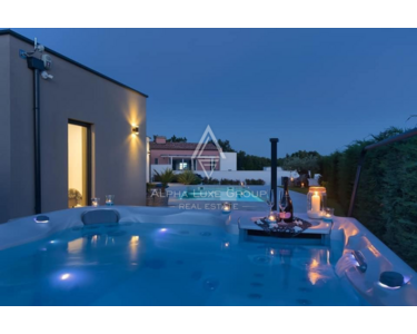 Auf dem 830 m² großen, vollständig eingezäunten Grundstück befinden sich ein beheizter 35 m² Pool, ein Whirlpool sowie eine überdachte Sommerküche mit Grill und Essbereich, ideal für das ganze Jahr. Weitere Ausstattungen umfassen Parkplätze für drei Fahrzeuge, eine Ladestation für Elektroautos, Videoüberwachung, Alarmsystem, automatisches Tor und eine Wasserenthärtungsanlage. Fußbodenheizung und Klimaanlagen sind im gesamten Haus installiert. Die Möbel sind nicht im Preis enthalten.
