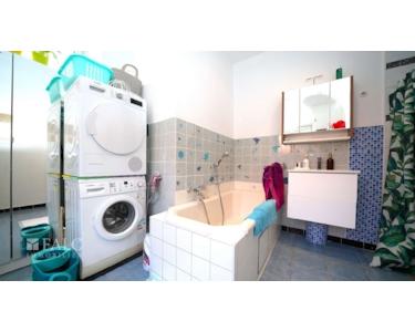 Das Tageslichtbad mit Waschmaschinenanschluss bietet genügend Platz für Ihre tägliche Morgen- und Abendroutine.