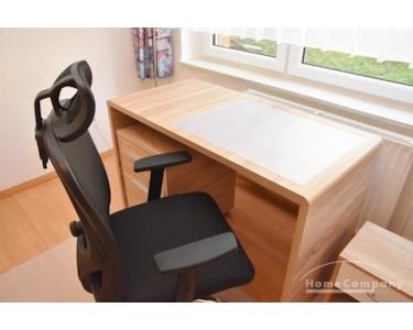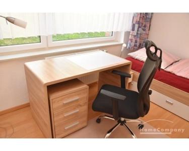 Schlafzimmer mit Bett 100x200cm , Kleiderschrank, Schreibtisch mit Drehstuhl.
