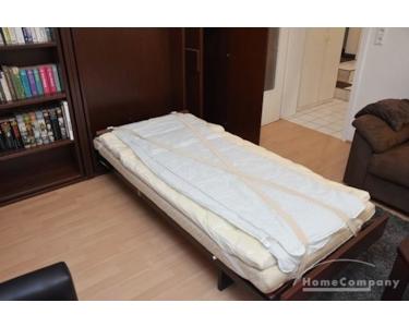 Wohnzimmer mit 2 Schrankbetten (für Besuch) in der Schrankwand, Kabel-TV, Relaxsessel, Sofa, Sessel, Couchtisch, Regal.