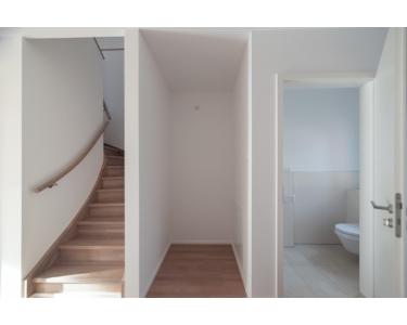 Sie betreten das Haus durch einen separaten Eingang, im EG befindet sich ausreichend Platz für eine Garderobe, sowie für Kinderwagen. Ein kleiner Technikraum und ein großer Raum unter der Treppe bieten Abstellplatz. Im Eingangsbereich gibt es ein Gäste- WC.