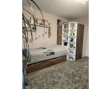 Das gemütliche Schlafzimmer mit einer Fläche von 16 m² verfügt über einen begehbaren Kleiderschrank mit praktischen Regalen für die Aufbewahrung vieler Dinge und einem beleuchteten Spiegel. Ein Doppelbett (kann bei Bedarf erworben werden) sowie ein 40 Zoll-Fernseher sind ebenfalls vorhanden.