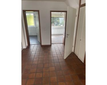 Es ist eine 3 Zimmer Wohnung mit eine voll ausgestattete Küche in Erdgeschoss von eine zwei Familien Haus mit eine große Terrasse und Garten und voll unterkellert