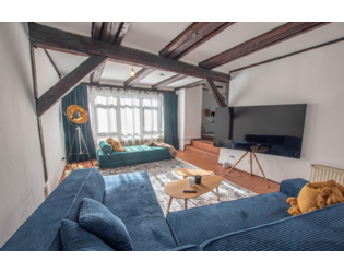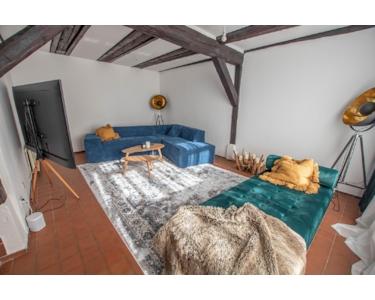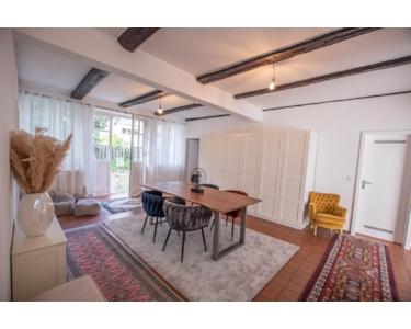 ✔ Charakteristische Fachwerkbalken und offene Raumgestaltung