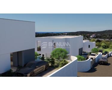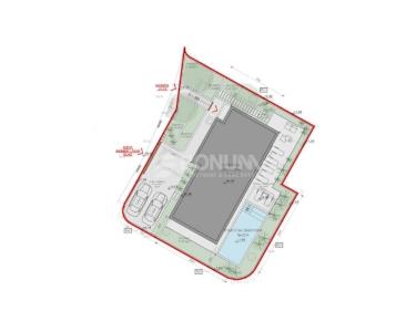Im Untergeschoss ist ein großer Freizeit-/Konobabereich mit Vorraum und Treppe vorgesehen, wodurch die Villa auch für die ganzjährige Nutzung geeignet ist. Der Außenbereich ist mit einer privaten Pool- und Sonnenzone geplant. Auf dem Grundstück sind zwei Stellplätze vorhanden, zudem gibt es eine organisierte Zufahrt (Haupteingang für Fußgänger und Fahrzeuge sowie einen zusätzlichen Fußgängereingang).