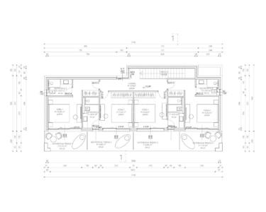 Im Obergeschoss befindet sich der Schlafbereich mit vier Schlafzimmern und vier Badezimmern. Jedes Schlafzimmer verfügt über Zugang zu einer eigenen überdachten Terrasse, was zusätzlichen Komfort und Privatsphäre gewährleistet. Die Raumaufteilung ist ideal für Familien oder Gäste.