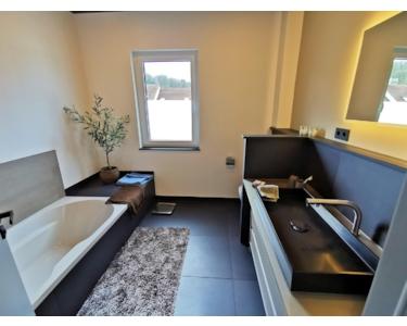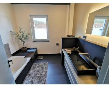 1 Tageslichtbad mit Badewanne, Waschbecken, WC, hochwertiger Badmöbel
