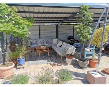 Terrasse mit überdachtem Carport- oder / und Lounge-Bereich