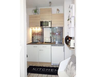 In der Nische rechts neben dem Essplatz befindet sich der Küchenbereich.