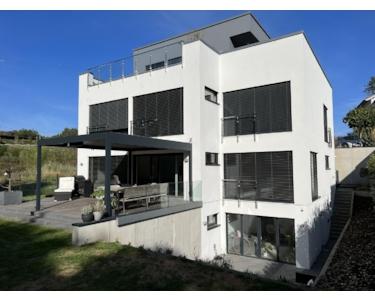 Das 2017 neu errichtete Haus verbindet höchste Maßstäbe an Energieeffizienz (KfW 40 Plus / Effizienzhaus Plus bzw. Passivhaus Plus) und Komfort mit moderner kubistischer Bauweise – gerne auch als Bauhausstil bezeichnet.