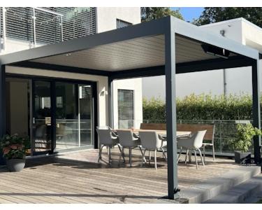 -Terrassenabdeckung mit elektrischem Lamellendach und seitlichem elektrischen