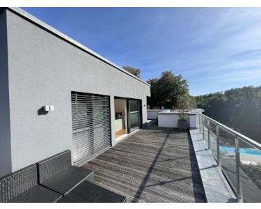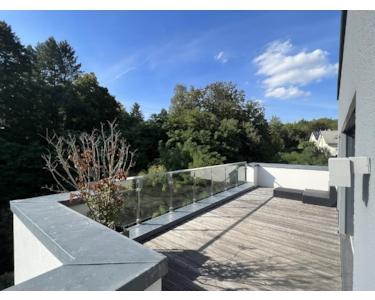 Den Garten und die umliegende Natur genießt man am besten von einer der Terrassen bzw. mit besonderem Weitblick von der über 70 qm großen Dachterrasse aus.