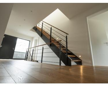 -Designtreppe aus Stahl und massiven Eiche- Vollholzstufen