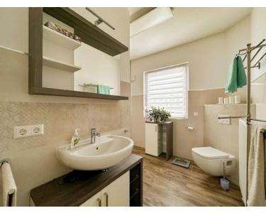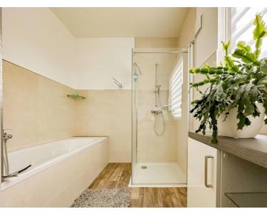 * Badezimmer mit Wanne und ebenerdiger Dusche
