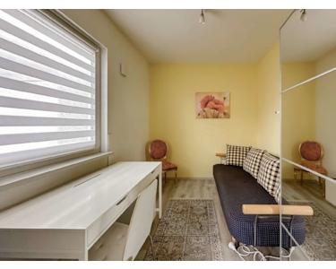 Das Tageslichtbad ist mit ebenerdiger Dusche und großer Badewanne sowie moderner Keramik ausgestattet. Ein separater Hauswirtschaftsraum sorgt zusätzlich für Ordnung und praktischen Stauraum. An heißen Tagen sichern Klimaanlagen im Wohn- und Schlafzimmer ein angenehmes Raumklima.