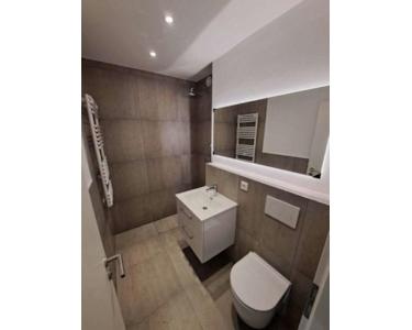 - Eine Duschwand aus Glas ist inzwischen vorhanden -