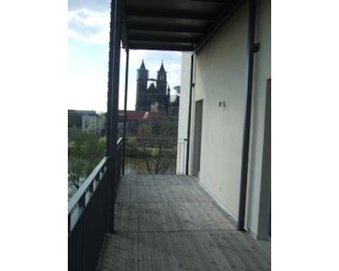 Lichtdurchflutete Wohnung, bodentiefe Fenster zur Südseite, Originaldielen aus der Bauzeit, moderne Einbauküche in weiß und Hochglanz, Boschgeräte, Bad mit Dusche, Solnhofener Marmor, großer Balkon zur Südseite mit Blick auf den Dom und die Elbe, Aufzug, Gartenanlage.