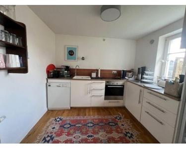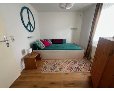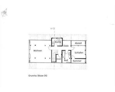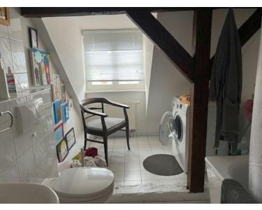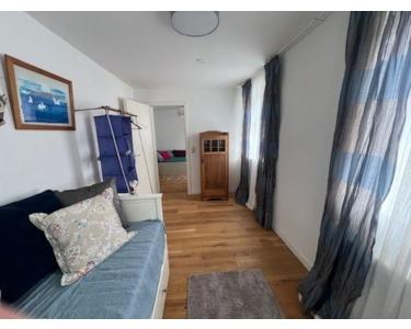 Im Obergeschoss befindet sich auf ca. 55 m² eine separate Wohneinheit mit einem Schlafzimmer, einem Wohnzimmer, einer kleinen Küche mit Einbauküche (Kochfeld von Neff), einem Tageslichtbad mit Badewanne sowie einem Abstellraum.