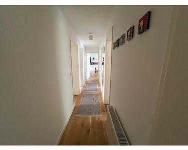 Die Hauptwohnung im Erdgeschoss erstreckt sich über ca. 110 m² Wohnfläche und bietet drei Schlafzimmer, ein Tageslichtbad mit Badewanne, ein Esszimmer mit Einbauküche udn vorgelagerter Terrasse im Garten sowie ein großzügiges Wohnzimmer (offen miteinander verbunden). Die lichtdurchflutende Terrassentür sorgt nicht nur für freien Blick in den Garten, sondern ermöglicht auch die unkomplizierte Bewirtung von Familien und Freunden direkt aus der Küche – ideal für gesellige Grillabende. Ergänzt wird diese Ebene durch einen praktischen Abstellraum und Hauswirtschaftsraum, der zugleich auch den direkten Zugang Gartengrundstück ermöglicht.