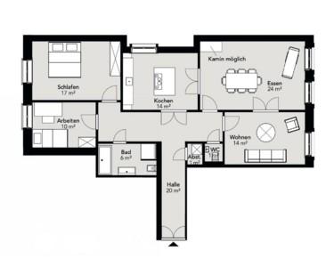 In der Küche sind mittig Anschlüsse für eine Kochinsel vorgerichtet.