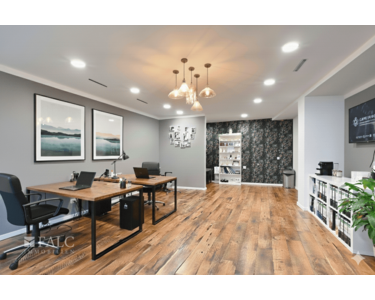 Durch den offenen Grundriss ist die Einheit vielseitig nutzbar und lässt sich — wie im digital erstellten Beispielbild gezeigt — auch problemlos als Büro- oder Dienstleistungsfläche einsetzen.