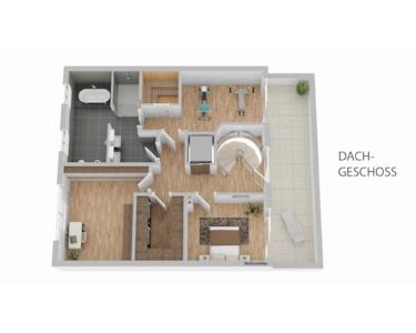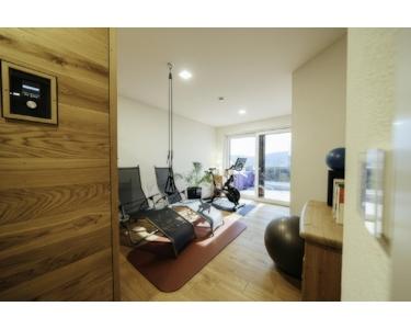 Arbeitszimmer, Fitness- und Saunaraum, Schlafzimmer, Ankleidezimmer, Luxusbad (19,49 m²). Deckenheizung/-kühlung für ganzjährige Wohlfühltemperatur.