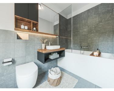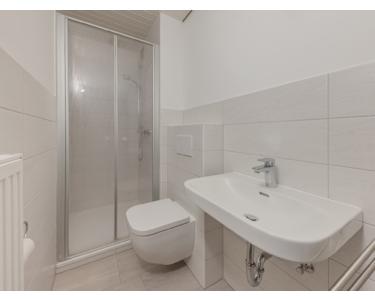 Das Familienbad mit Badewanne entspricht dem baujahrtypischen Charme, während das separate Duschbad bereits modernisiert wurde und Komfort im Alltag garantiert. Ein praktischer Abstellraum rundet den funktionalen Bereich ab.