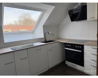 Die Küche liegt in Nordausrichtung und ist dank eines extrem großen Dachfensters sehr gut belichtet. Die moderne weiße Einbauküche ist im Kaufpreis enthalten. Das Schlafzimmer ist nach Osten ausgerichtet.