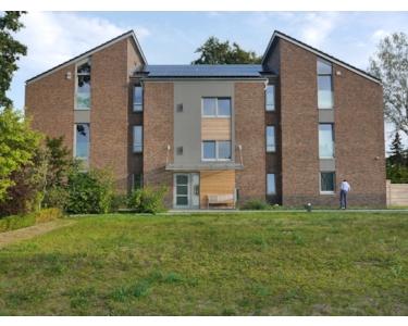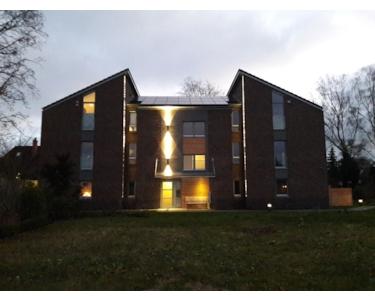 Rechnerisch wird die gesamte für das Haus benötigte Energie regenerativ über Fotovoltaik, Luftwärmenutzung und Luft/Wasser-Wärmepumpe erzeugt. Dadurch erlangt das Haus eine in der Bilanz nahezu vollständige Eigenversorgung (jahreszeitliche Abweichungen). Die Heizwärme wird über elektrische Fußbodenheizung im gesamten Gebäude sowie die Luftwärmerückgewinnung, das Warmwasser über die elektrisch betriebene Luft/Wasser- Wärmepumpe erzeugt. Ein wesentlicher Anteil der für die Wohnungen erforderlichen Heiz- und Warmwasserenergie sowie für den Stromverbrauch wird den Mietern über einen niedrigen Strompreis für den PV - Strom angeboten (optional). Dieses innovative und nachhaltige Konzept sichert Ihnen als Mieter langfristig niedrige und stabile Verbrauchs- und Stromkosten (s. Wärmeschutznachweis).