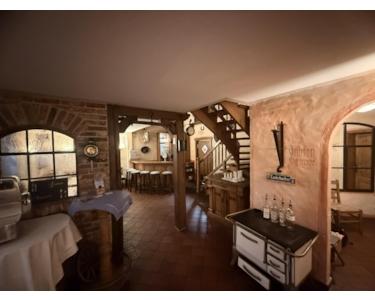Die Immobilie verfügt über mehrere gemütliche Gasträume mit traditionellem, warmem Charakter. Holz, historische Elemente und eine klare Raumstruktur prägen das Ambiente. Die Galerieebene eignet sich ideal für Gesellschaften, Feiern oder separate Gästebereiche.
