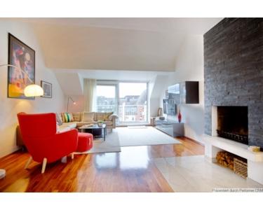 Penthouse apartment across two storeys, with the lift taking you right to the door. Enjoy the excellent views over Düsseldorf! Nordstraße and Schwerinstraße are both just a few minutes’ walk away, with the banks of the Rhine being a further five minutes away. The Pempelfort area of Düsseldorf, bordering Golzheim, is one of the most sought-after residential areas in the city. The property offers two bedrooms and two bathrooms, one of which includes both a bath and a shower.
