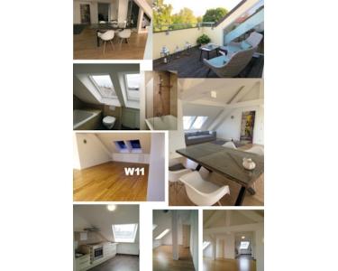 * viele bodentiefe Fenstertüren, die zu Balkonen und Terrassen führen