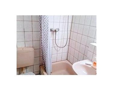 Neuer Laminatboden, Fliesenboden, Küchenzeile mit Kühlschrank und zwei Herdplatten, Bad hell gefliest mit Dusche, Gegensprechanlage, Aufzug, Verschlag im Keller.