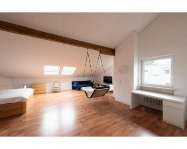 Im 1. Obergeschoss befinden sich drei große Schlafzimmer mit Parkett- und Laminatboden und das 2007 vollständig neu renovierte Bad. Von allen Schlafräumen haben Sie direkten Zugang zum 2022 erneuerten, umlaufenden Balkon. Im Dachgeschoss betreten Sie das Studio, welches aus zwei sehr großen Räumen besteht. Aus beiden Zimmern haben Sie nochmals direkten Zugang zum erneuerten Balkon. Ein hell gefliestes, renoviertes Duschbad ist ebenfalls vorhanden. Im Kellerbereich gibt es einen ca. 28qm großen Hobbyraum mit Laminatboden, einen großen Wirtschaftsraum mit Waschküche, einen Vorratsraum, den Technikraum (Brenner und Kessel sind 2007 erneuert worden), sowie den Raum mit dem Öltank. Ein Tiefgaragenstellplatz sowie ein großer WEG-Garten zur Mitbenutzung gehören zum Anwesen dazu.